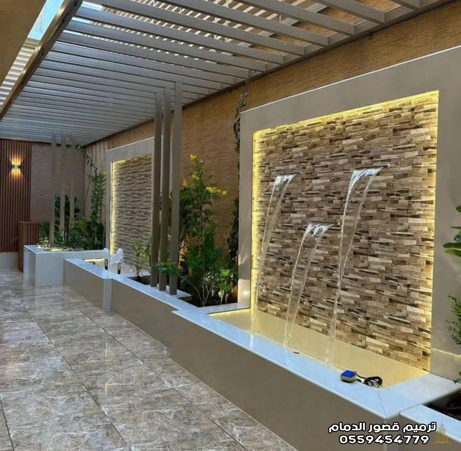 - توزيع احترافي لتمديدات الكهرباء والمياه (للنافورة أو الشلال).