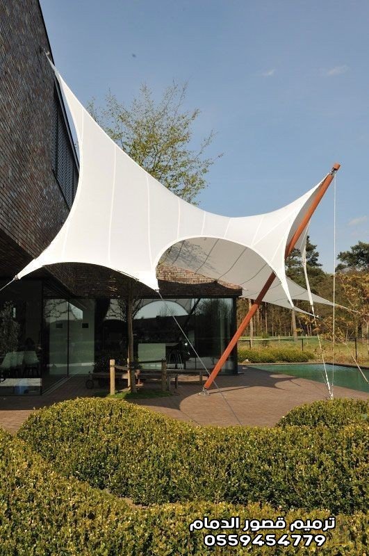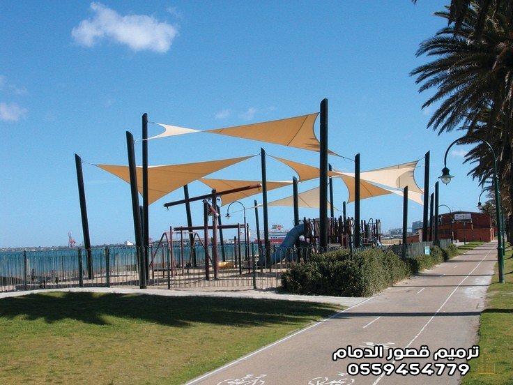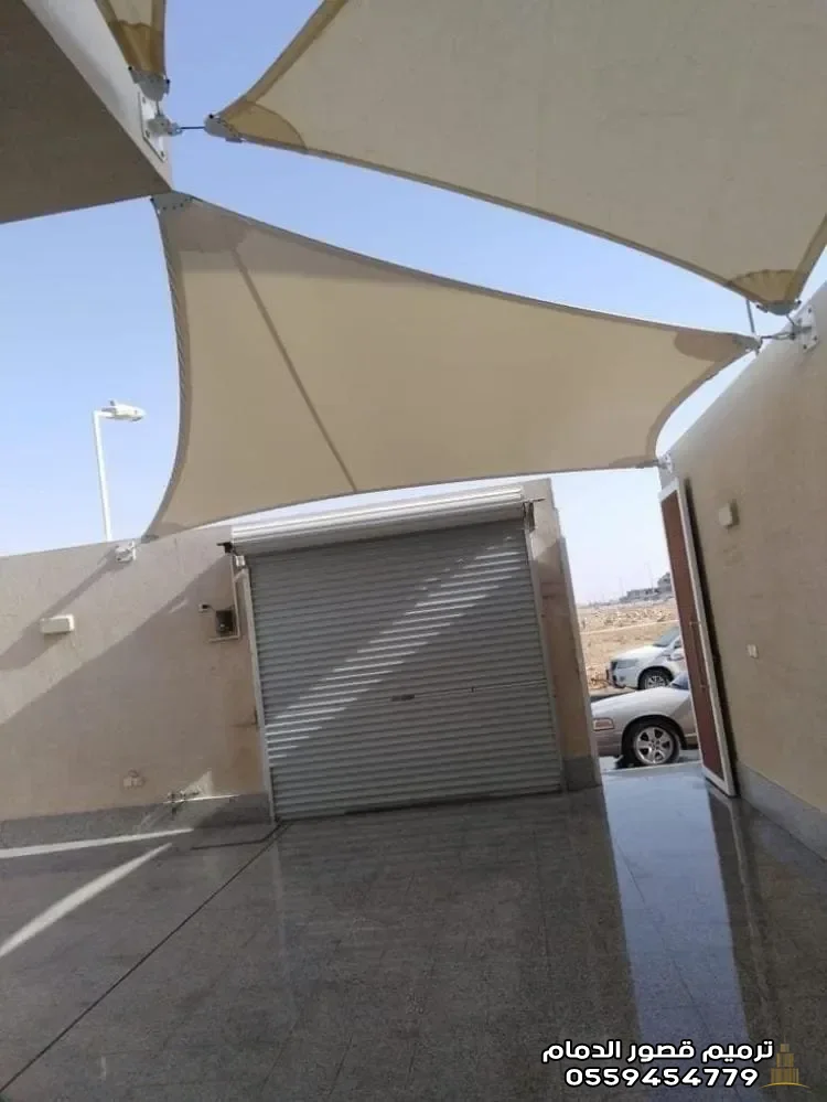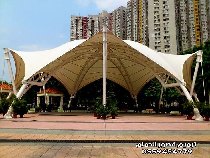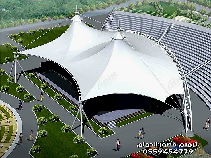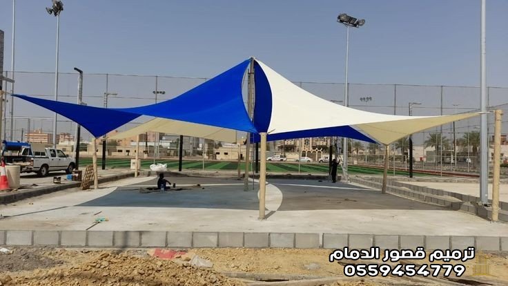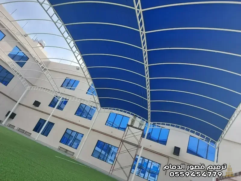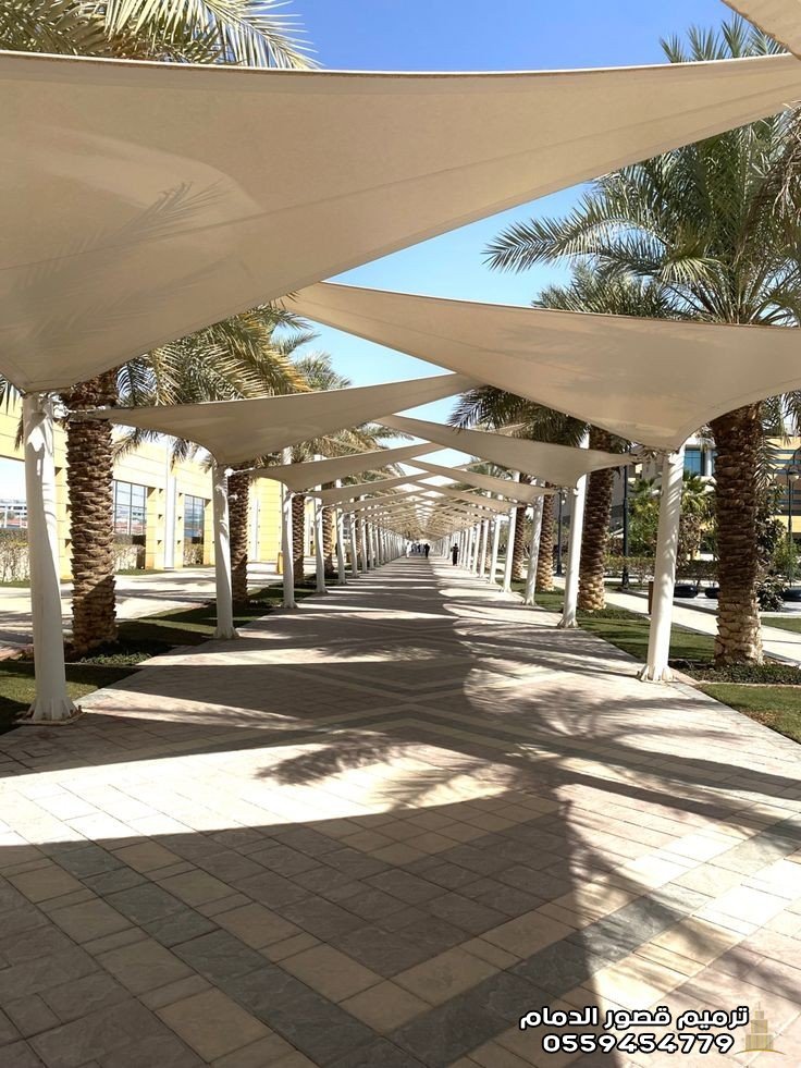 2. مظلات الشد الإنشائي بالدمام: هندسة الجمال والمساحات الضخمة