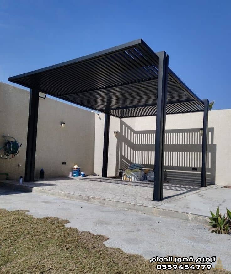 - نظام "اللوفر" الذكي: برجولات ذات شرائح قابلة للتحريك (يدوياً أو بالريموت)، تسمح لك بالتحكم في كمية الضوء والتهوية، مع نظام تصريف مياه أمطار مخفي.